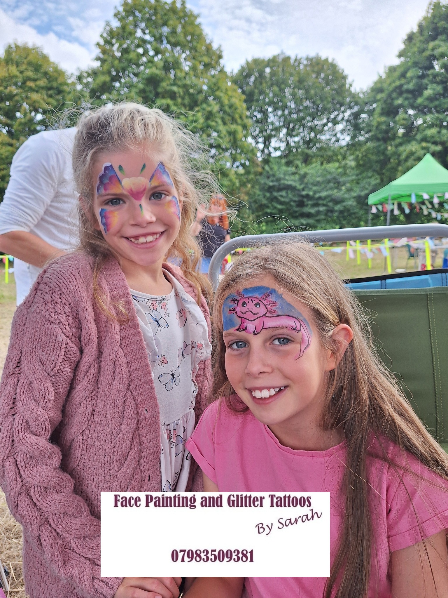 Welcome to Face Painting and Glitter Tattoos by Sarah. I provide both face painting and glitter tattoos for events and special occasions covering a wide range of areas such as Cardiff, Newport, Caldicot, Chepstow, Monmouth, Hereford, Coleford, Bristol and more. If you have an event such as a party, fete, festival or any corporate event where you wish to add a little sparkle or smile why not consider face painting and glitter tattoos.
